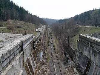 Lucrarile de constructie au fost abandonate dupa 1990 in conditiile in care infrastructura lucrarilor de arta in era realizata. Calea ferata era pozata pe circa 45% din lungimea traseului.