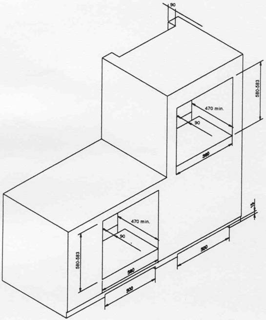 Cuptorul poate fi incorporat intr-o unitate standard de 600 mm dupa cum este aratat in figura 1; el poate fi incorporat sub o suprafata de lucru sau intr-o unitate inalta atunci cind cuptorul se incorporeaza intr-o coloana.
