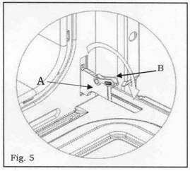 Balamalele "A" sint prevazute cu cite un profil in forma de "U" mobil - "B"; atunci cind profilele in forma de "U" sint ridicate, balamaua este eliberata din locul ei. Dupa realizarea acestei operatii, usa trebuie ridicata si scoasa culisind-o spre exterior. Cind efectuati aceasta operatie, apucati de lateralele usii cuptorului de deasupra balamalelor. Pentru a monta la loc usa, mai intii ghidati balamalele in santurile lor.