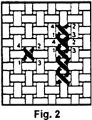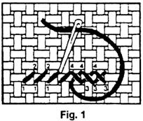 Acest punct de coasere este utilizat de obicei pentru a lucra linii diagonale. Asa cum arata fig.4, acul iese la suprafata in punctul 1, apoi desparte firul materialului, coborand prin punctul 2.