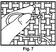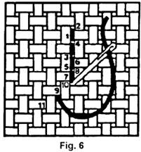 Asa cum este aratat si in fig.8, se scoate acul prin punctul 1, se face o bucla, se coboara tot prin punctul 1 si se iese prin punctul 2, tinand firul dedesubtul varfului acului. Trage firul si coboara prin punctul 2, pentru a ancora bucla, completand astfel cusatura. Pentru a consolida cusatura, este bine sa cobori la marginea urmatorului fir de material, unde sa fixezi bucla.