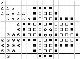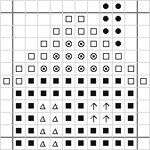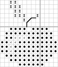 6. Tighelul se face urmarind conturul puternic de pe diagrama. Tighelul trebuie cusut abia dupa ce toate cruciulitele au fost completate, pentru ca nici un detaliu al conturului sa nu fie acoperit de cruciulite.