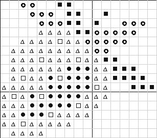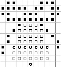 5. Fiecare patrat de pe diagrama reprezinta o cruciulita ce trebuie lucrata pe materialul tau. Fiecare patrat al materialului reprezinta un spatiu pentru o cruciulita. Coase toate cruciulitele in aceeasi directie, lucrand diagonalele de la stanga la dreapta si intorcandu-te cu diagonalele de la dreapta la stanga.