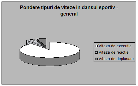 In dansul sportiv viteza de excutie a unei figuri pe un ritm dat este foarte importanta denotand o tehnica foarte bine pusa la punct. Daca ne gandim ca exista ritmuri care ajung la 50 BPM (batai pe minut) in dansurile latino-americane de exemplu (samba si jive) ajungem la concluzia ca un rol determinat aici il joaca fibrele musculare (ca si valsul vienez sau quickstep din sectiunea dansurilor standard). Mai precis elasticitatea acestora este principiul oricarei miscari in dansul sportiv, dupa exemplul unui resort sau a unui elastic: daca aceste sunt comprimate sau extinse foarte mult se creaza o forta de revenire direct proportionala ca capacitatea de deformare initiala - principiul actiunii si reactiunii. De aceea accentul se va pune in dansul sportiv pe marimea coeficientului de elasticiatea musculara si nu pe dezvolarea masei anumitor grupe de muschi. Studii stiintifice de specialitate au pus in evidenta existenta a doua tipuri de fibra musculara: rosii si albe, distributia lor fiind, se pare, stabilita genetic. Fibrele rosii, sau lente, au un continut mai mare de mioglobina (care actioneaza ca un depozit pentru oxigenul transportat de sange la celule) si sunt. Din punct de vedere biochimic, mai bine echipate pentru lucrul (rezistenta) aeroba. Pe de alta parte, fibrele albe sau repezi au un mare continut de glicogen (carbohidranti) si sunt mai bune in tipurile de eforturi anaerobe - specifice dansului sportiv - de scurta durata si intense (Fox, Bowes and Foss 1989; Willmore and Costill 1980). Procentajul de fibre musculare nu poate fi modificat, dar antrenamentele specifice intense pot mari randamentul fibrelor musculare si pot modifica structura lor biochimica. Posibilitatea stabiliarii proportiei fibrei musculare rapide (albe) exista prin procedeul numit biopsie - extragerea si analizarea unei probe de tesut muscular, poate ajuta antrenorul sa judece daca viitorul sportiv are inclinatie fizica spre dansul sportiv sau il poate indrepta catre sporturi in care predomina rezistenta.
