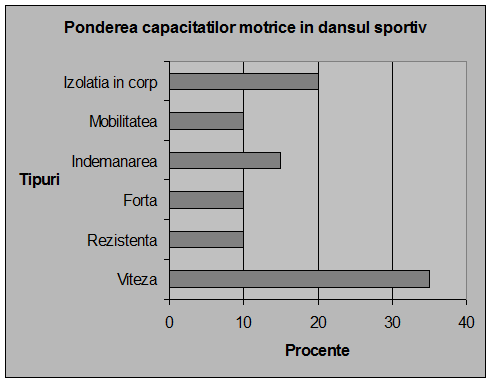 Iata deci modul in care se pot masura indicii capacitatii motrice pentru dansul sportiv in viziunea mea, aceste exercitii fiind perfectibile, bineinteles. Ponderea acestor calitati avand in vedere specificul dansului sportiv este urmatorea: