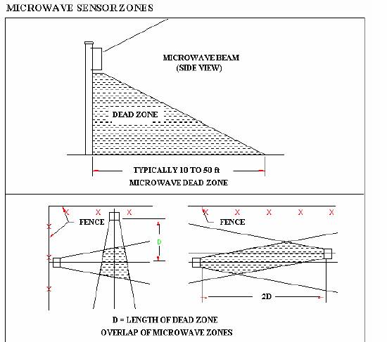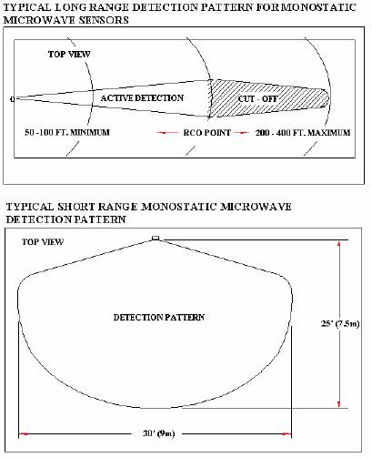 Emitatorul si receptorul sunt amplasate in aceeasi carcasa. Aria de acoperire este reglabila in funcite de sensibilitatea receptorului. Acest reglaj este deosebit de important intrucit microundele trec de regula prin pereti, char si cei din beton armat.