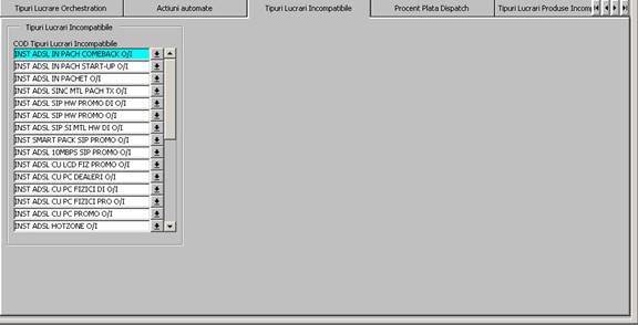 Se incarca din tipuri cerinta in canal cerere lista care descrie ce tip de cerere poate sa gestioneze fiecare magazin in parte. Ex: Doar dealerii pot sa execute anumite lucrari (INST. ADSL % DI). |