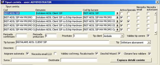 þ Cererea se va clona fara a se valida (ex. ADSL), La clonare cererea va fi validata. |