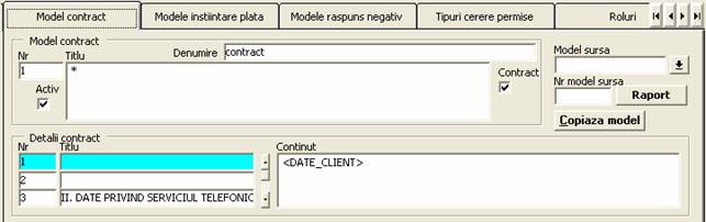Fig. 4. Ecranul Tipuri Cerinte - Tab ,Model contract'
