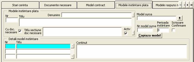Fig. 5. Ecranul Tipuri Cerinte - Tab ,Modele instiintare plata'