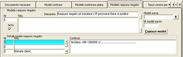 Fig. 6. Ecranul Tipuri Cerinte - Tab ,Modele raspuns negativ'