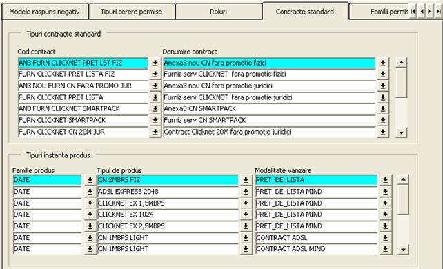 Fig. 9. Ecranul Tipuri Cerinte - Tab ,Contracte standard'