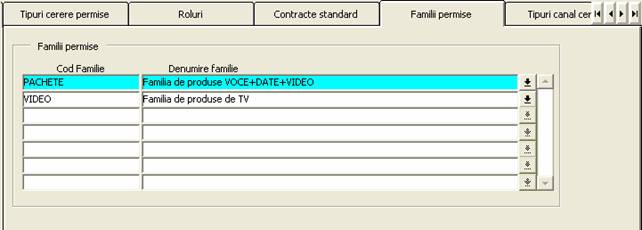 Fig. 10. Ecranul Tipuri Cerinte - Tab ,Familii permise'