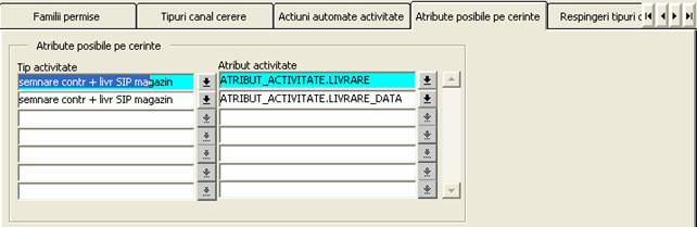 Fig. 13. Ecranul Tipuri Cerinte - Tab ,Atribute posibile pe cerinte'