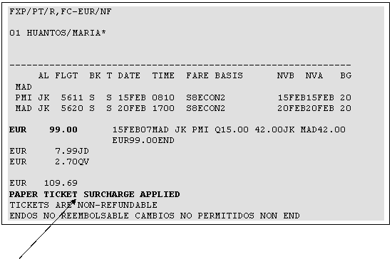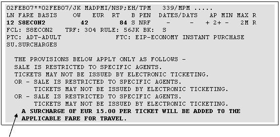 Datorita politicii companiilor aeriene si a directivelor IATA de eliminare a biletelor de hartie pana la sfaritul anului 2007, majoritatea tarifelor incarcate in sistem sunt dedicate biletelor electronice. In notele tarifare corespunzatoare acestor tarife, sectiunea "SURCHRGES", se mentioneaza ca, in cazul emiterii biletelor de hartie se aplica o anumita taxa pe care agentul emitent este obligat sa o incaseze de la pasager.