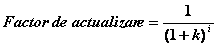 Factorul de actualizare pentru fluxurile de numerar disponibile, aferente fiecarui an din perioada explicita de previziune este calculat cu relatia cunoscuta: