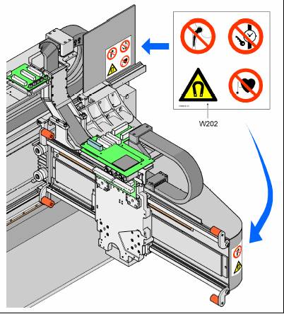 Eticheta de atentionare W202 amplasata pe gantry (macara)