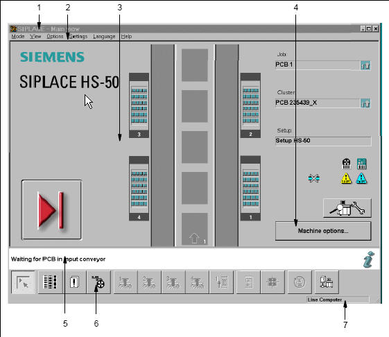 In functie de nivelul de acces se pot obtine informatii despre configurarea masinii (in nivelul de "operator" ) sau se poate activa si dezactiva afisarea optiunilor masinii ("line engineer" sau "service")