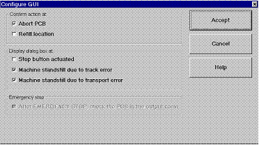 Aceasta functie permite sa se opreasca din executie anumite operatii , cum ar fi recunosterea pozitiilor feederelor sau schimbarea de nozzle'uri in cazul unui stop al masinii( eroare fatala sau s-a apasat butonul de stop). Se apasa "abort processing" si se selecteaza in casuta de dialog operatia ce se doreste a numai fi efectuata.