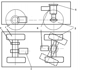 a. Deoarece traductoarele sunt incrementale, pentru a realiza pozitia de referinta, se da o comanda speciala de aducere interna la zero in momentul cand masina ajunge la statia de andocare, a carei pozitie in sistem este cunoscuta (v. fig. 1,b). Masina este pozitionata initial manual, perpendicular in statia de andocare.