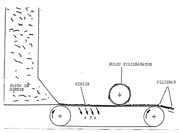 - filigranul se formeaza in procesul de productie in interiorul masinii de fabricat hartie in fibrele de hartie;