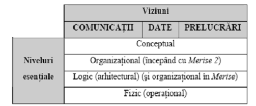 Corespunzator celor patru niveluri amintite anterior: conceptual, organizational, logic si fizic, aplicate celor trei viziuni, rezulta urmatoarele modele: