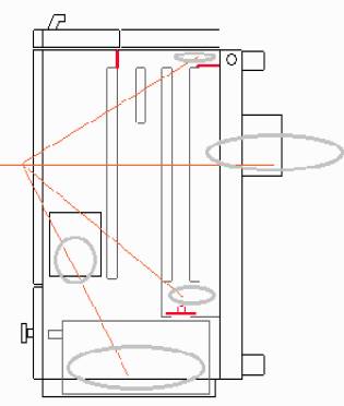 Focarul se va monta pe partea laterala a cazanului (demontati mai intai placa de protectie de pe cazan).