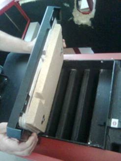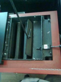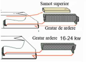 Placuta metalica furnizata in pachet are scopul de a separa interiorul camerei de ardere de cenusar. Pentru montarea acestuia in locul destinat, folositi manerul cu peria de curatire care se va trece prin inelul sudat pe placuta metalica. Desurubati cele doua suruburi tip fluture (fig. 1) si demontati usa care acopera elementii acestuia (fig.1). Cu ajutorul periei de curatare coborati placa metalica intre elementi (fig. 2). Asigurati-va ca placa metalica inchide corespunzator orificiul de sub camera de ardere.