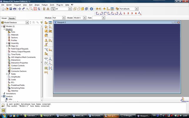 pentru a incepe analiza. ABAQUS/CAE utilizeaza o baza de date pentru model