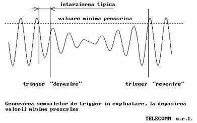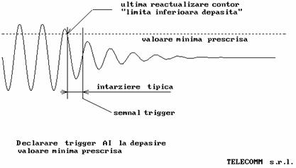 Pentru nivelul superior declararea depasirii se face la al treilea esantion cu valoarea mai mare decat nivelul prescris, asa cum se poate observa din figura 5. Pentru nivelul inferior este stabilit un timp tipic de asteptare (3/4 dintr-o perioada) in care daca nu s-a inregistrat nici o valoare instantanee mai mare decat minima prescrisa se declara depasire limita inferioara. Exemplificarea acestui mod de lucru este facuta in figura 6.