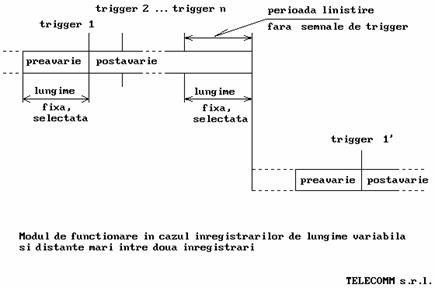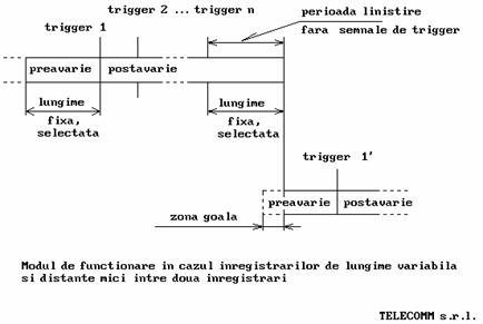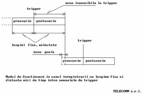 In figura 9 este descris modul de inregistrare in cazul in care timpul scurs intre sfarsitul unei inregistrari si un nou semnal de trigger este mai mare decat timpul de preavarie selectat. In acest caz toate inregistrarile sunt complete si distincte.