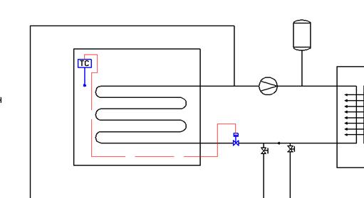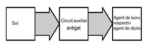 Caldura preluata de la sursa de caldura este transportata cu ajutorul unui amestec antigel, al carui punct de inghet se situeaza la circa -15 ºC. Prin aceasta se asigura faptul ca sonda nu va ingheta in timpul functionarii. Schema acestui circuit este prezentata in figura de mai jos