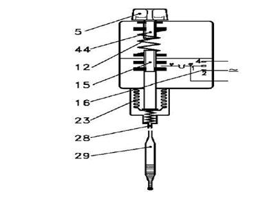 Fig.8..4.2 reprezinta automatizarea pentru oprirea si pornirea compresorului cu un presostat de joasa presiune ,oprirea si pornirea compresorului corespunzand cu oprirea si pornirea