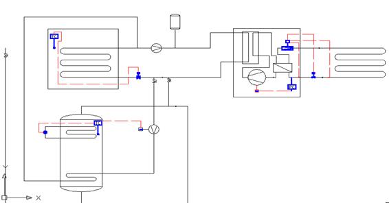 Instalatia de incalzire si preparare a apei calde menajere cu ajutorul unei pompe de caldura pentru un imobil cu birouri
