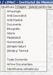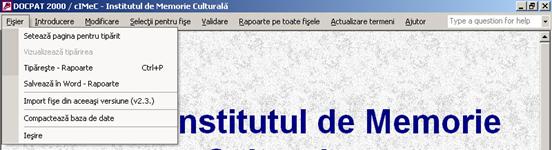 Ca sa se salveze fisele se intra in DOCPAT, la meniul Modificare, se alege domeniul cultural in care sunt fisele, se alege inregistrarea dorita. Deschiderea fisei implica: