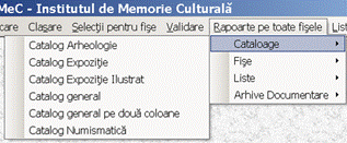 Daca se doreste sa se vada sub forma de cataloage, in functie de tipul materialului documentar Rapoarte pe toate fisele -> Arhive documentare