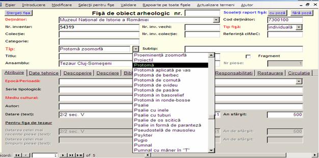 Tipul Protoma zoomorfa, nefiind in lista, va fi afisat la validare.