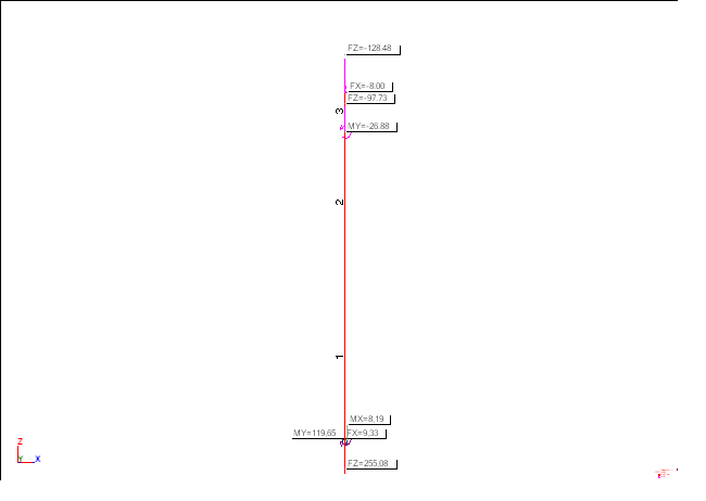 - self-weight of construction was considered automatically by program Robot v.20.1