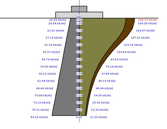 Rozkad naprse pod analizowanym fundamentem: