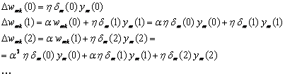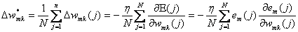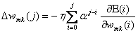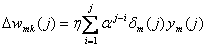 wmk(j) reprezinta valoarea ponderii sinaptice ce leaga iesirea neuronului k cu intrarea neuronului m, la iteratia j. In faza de antrenare, aceasta pondere sinaptica poate fi modificata cu valoarea D wmk(j);