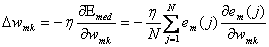 Similar algoritmului de antrenare pentru un singur neuron, corectia Dwmk(j) aplicata ponderii wmk(j) la iteratia j, va fi data de