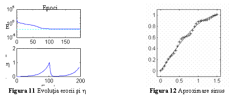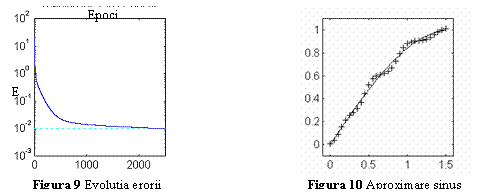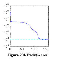 continua) si valorile initiale ale iesirilor retelei (marcate cu ). Fig. 20b arata evolutia erorii in cursul