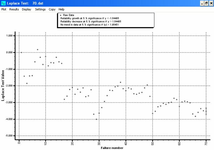 Rezultatele testului sunt afisate grafic si sunt interpretate dupa cum urmeaza.Pentru datele timpi intre defectari daca media executiilor creste atunci timpul intre defectari creste si deci creste si fiabilitatea sistemului, prin urmare modelele pot fi aplicate daca media aritmetica a executiilor este crescatoare.