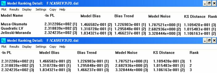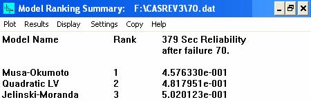 Pentru a estima fiabilitatea programului software ale carui caracteristici sunt date prin setul de date, din multitudinea de modele de fiabilitate software existente in utilitarul Casre vom executa doar modelul Musa-Okumoto,modelul Jelinski-Moranda si modelul quadraticLittlewood-Verral considerate ca fiind cele mai importante.