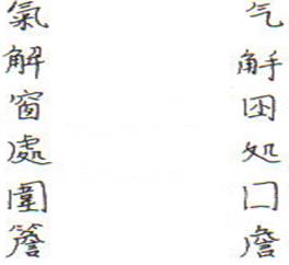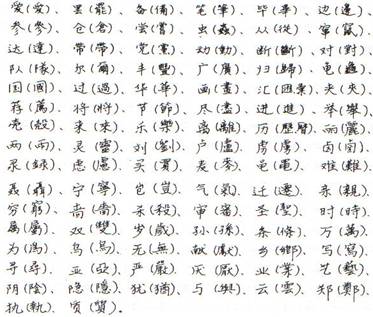 Simplificand astfel cele zece cifre, putem purcede in continuare la transformarea celor 214 radicali, pentru ca acestia sa devina cursivi, si sa "curga intr-o maniera gratioasa, ca in stilul caoshu" . Iata o lista cu cei mai intalniti radicali in forma lor regulata si cea simplificata conform jianyi: