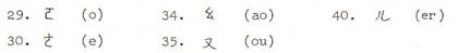 6.Ultima si cea mai putin productiva clasa este cea a caracterelor rasturnate ; procedeul consta in obtinerea unui nou semn grafic prin rotirea unuia deja existent, asa cum s-a procedat pentru obtinerea semnului kao- a examina obtinut prin rotirea semnului lao - batran
