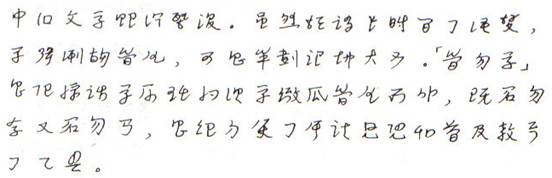 Concluzia pe care o putem trage citind acest text este aceea caautorul lucrarii mai sus mentionate pledeaza in favoarea sistemului jianyi, pe care il considera ca fiind mai simplu decat stilul regulat (kaishu). Tot in favoarea stilului cursiv (jianyi) vin si urmatoarele afirmatii: