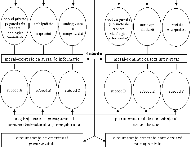 Autonomia codurilor textuale, autonomia actului decodificarii si, paralel cu acestea, complexul circumstantelor socio-culturale necodificate complica simtitor modelul actului comunicational. Destinatarul depune eforturi de adecvare la codul mesajului ce i se transmite, de reconstituire a presupozitiilor textului, insa, in mod fatal, intervin factori psihologici, presiunea contextelor, repertoriul personal de coduri si orizonturi subiective de asteptare, astfel incat continutul receptat nu coincide cu mesajul si intentia initiala care il organizeaza ca text.