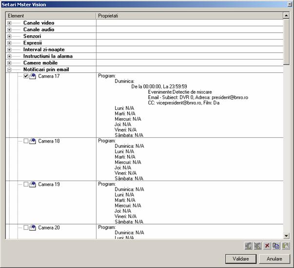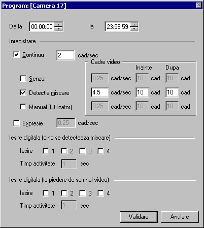 Obs. Orice eveniment detectat in Modul alarma pe criteriile selectate pentru camera respectiva trebuie supervizat de utilizator. Evenimentele ulterioare sunt conditionate de acesta, ele nefiind luate in considerare pana la rezolvare primului eveniment.