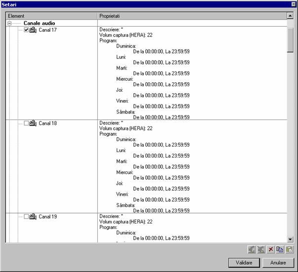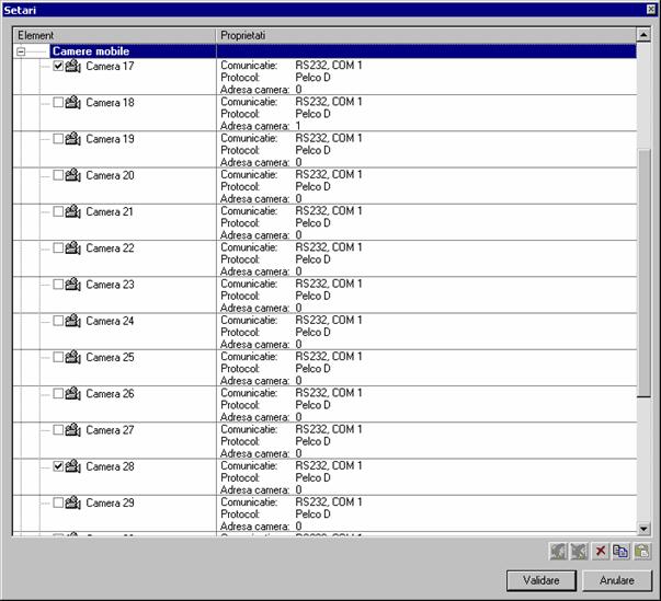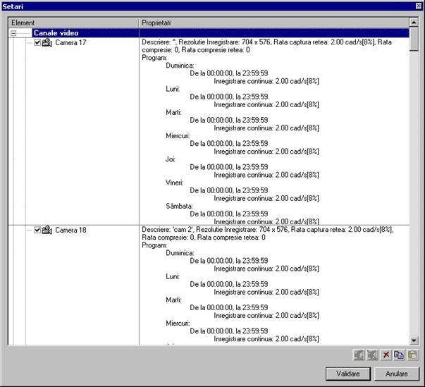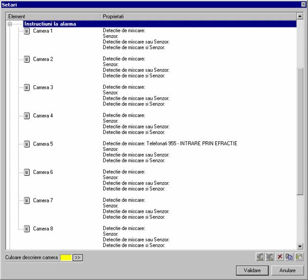 butonul de Configurare afiseaza starea curenta a setarilor de alarmare pe camera (este echivalent cu functionalitatea expusa de butonul Setari alarma)
